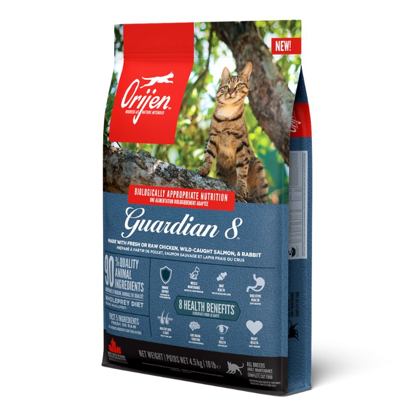 אוריג'ן (ORIJEN), גרדיאן 8 (Guardian 8), מזון לחתול, 4.5 ק"ג, עוף, סלמון, הודו, הרינג, מקרל וארנבת.