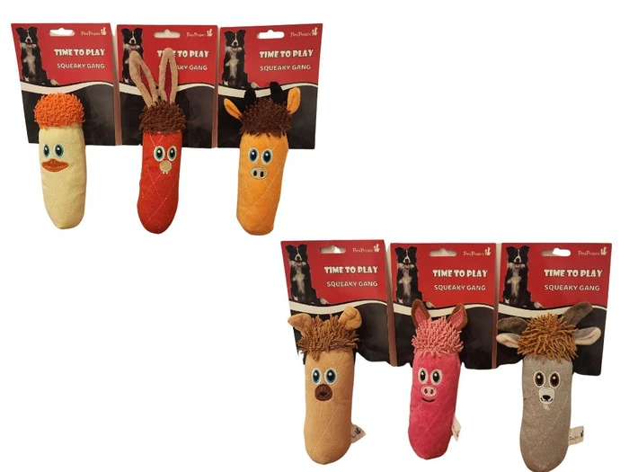 בובות SQUEAKY GANG, צעצועי בד מצפצפים עם דמויות מצחיקות, PETS PROJECT