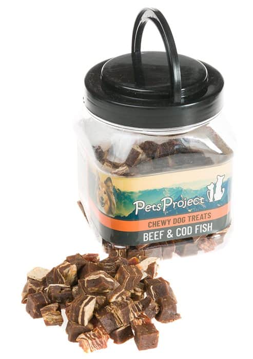 חטיף בצנצנת קוביות בקר ודג קוד 400גר