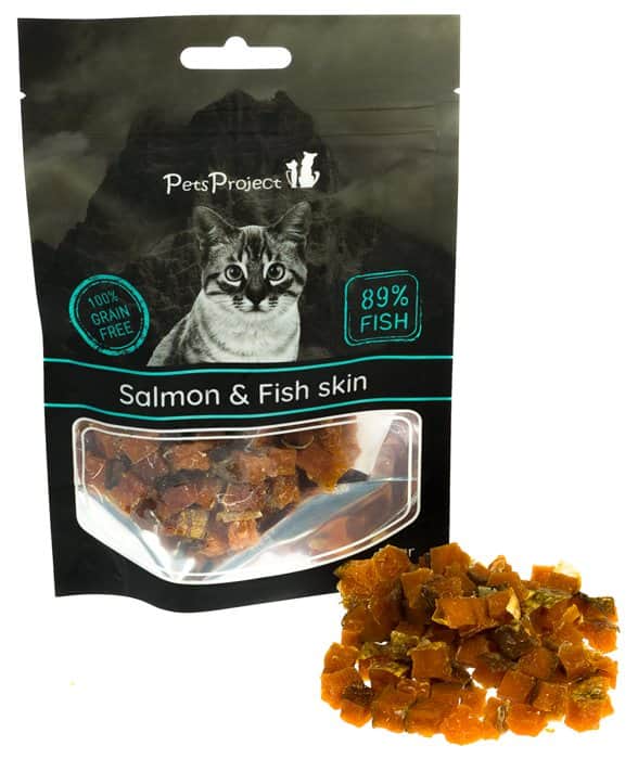 כמות של חטיף סלמון ועור דג לחתול - 100 גרם