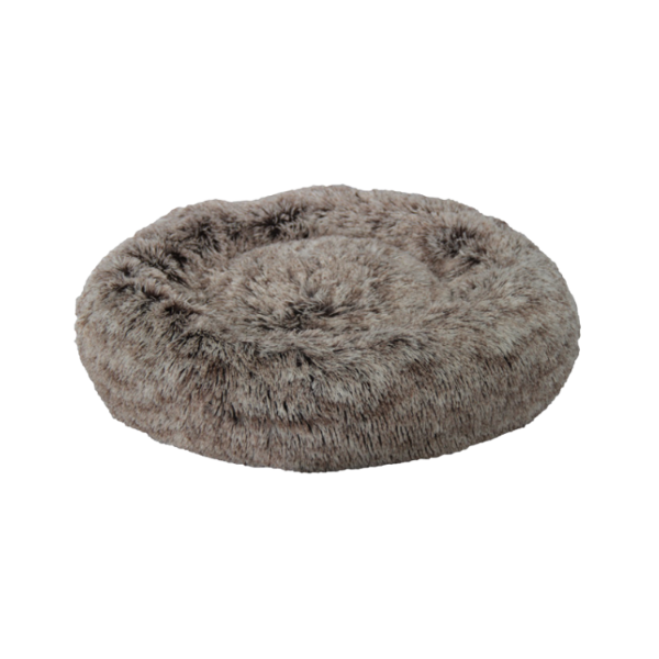 מיטה עגולה, לכלב ולחתול, בצבע חום ולבן, קוטר 76 ס"מ, מידה M, דגם Fluffy