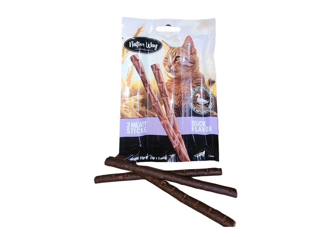 NATIVE WAY, מקלוני חטיף לחתול בטעם ברווז, מארז 2435 גרם (סה"כ 360 גרם)