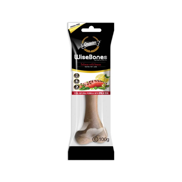 עצם לעיסה ללא דגנים בטעם סלמון ולימון לכלב – מידה לארג' – כ-100 גרם