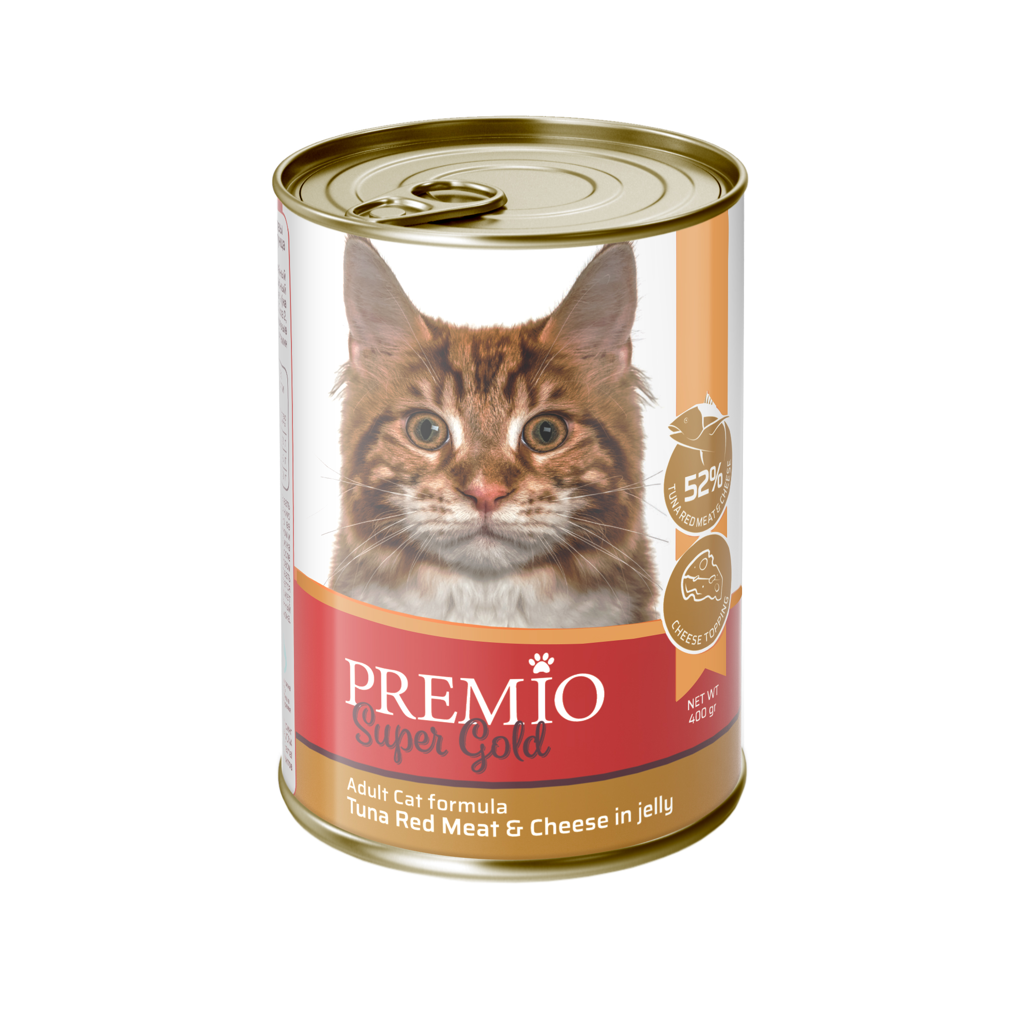 Premio (פרמיו), סופר גולד, מעדן לחתולים בטעם טונה אדומה עם גבינה בג'לי, 400 גרם