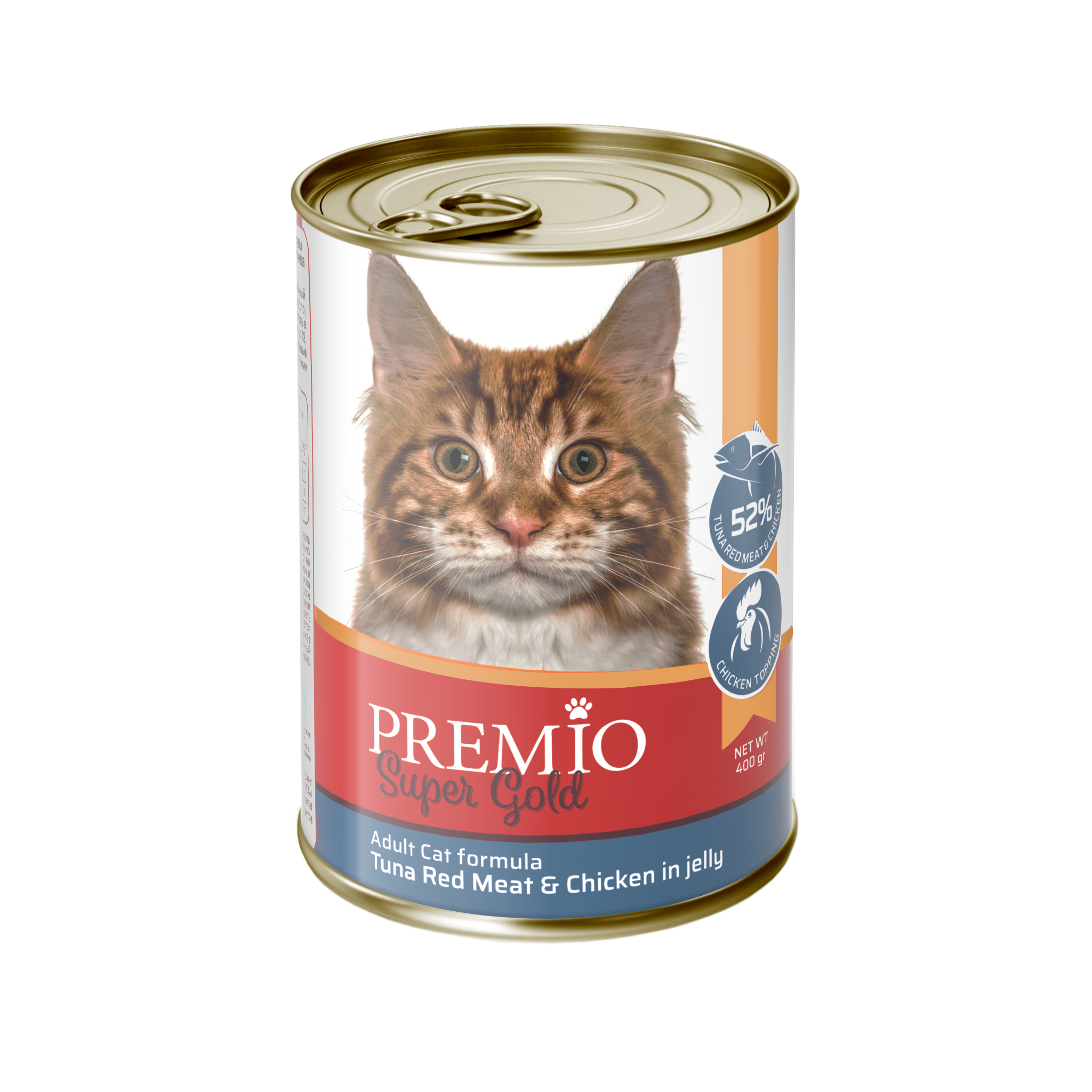Premio (פרמיו), סופר גולד, שימור לחתולים בטעם טונה אדומה ועוף בג'לי, 400 גרם