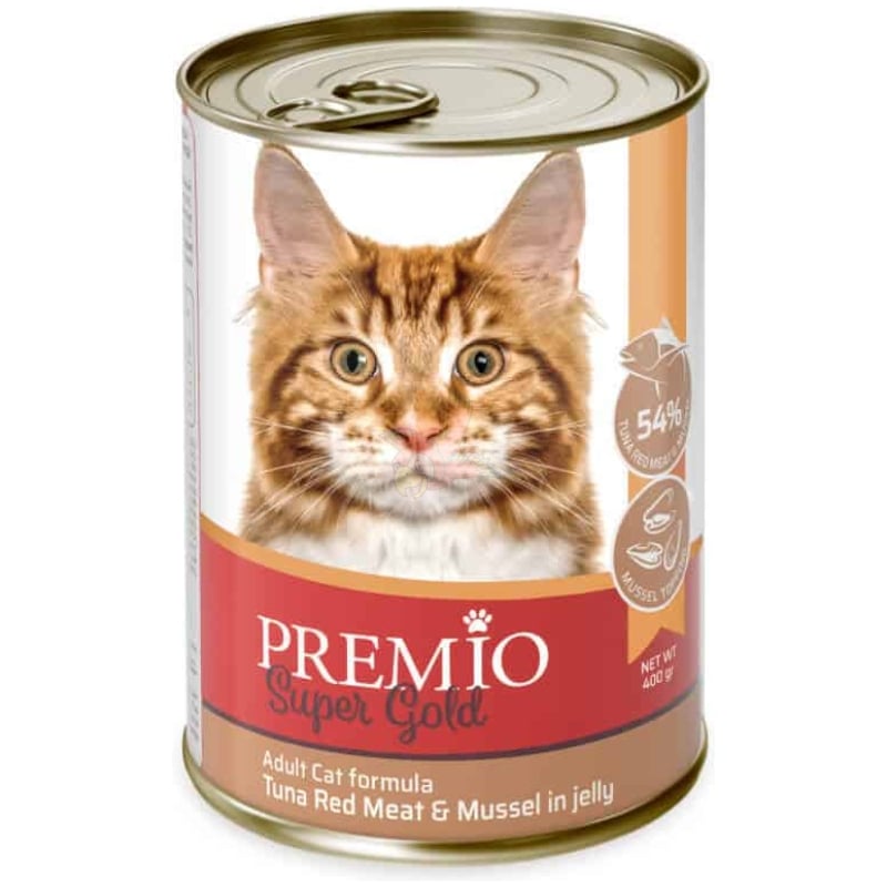 Premio (פרמיו), סופר גולד, שימור לחתולים בטעם טונה אדומה עם צדפות בג'לי, 400 גרם