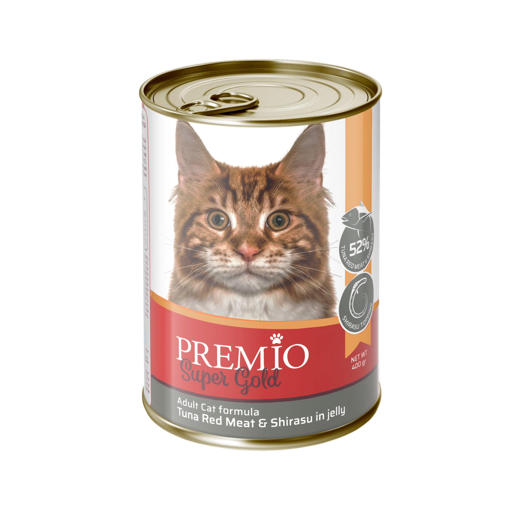 Premio (פרמיו), סופר גולד, שימור לחתולים בטעם טונה אדומה עם שיראסו בג'לי, 400 גרם