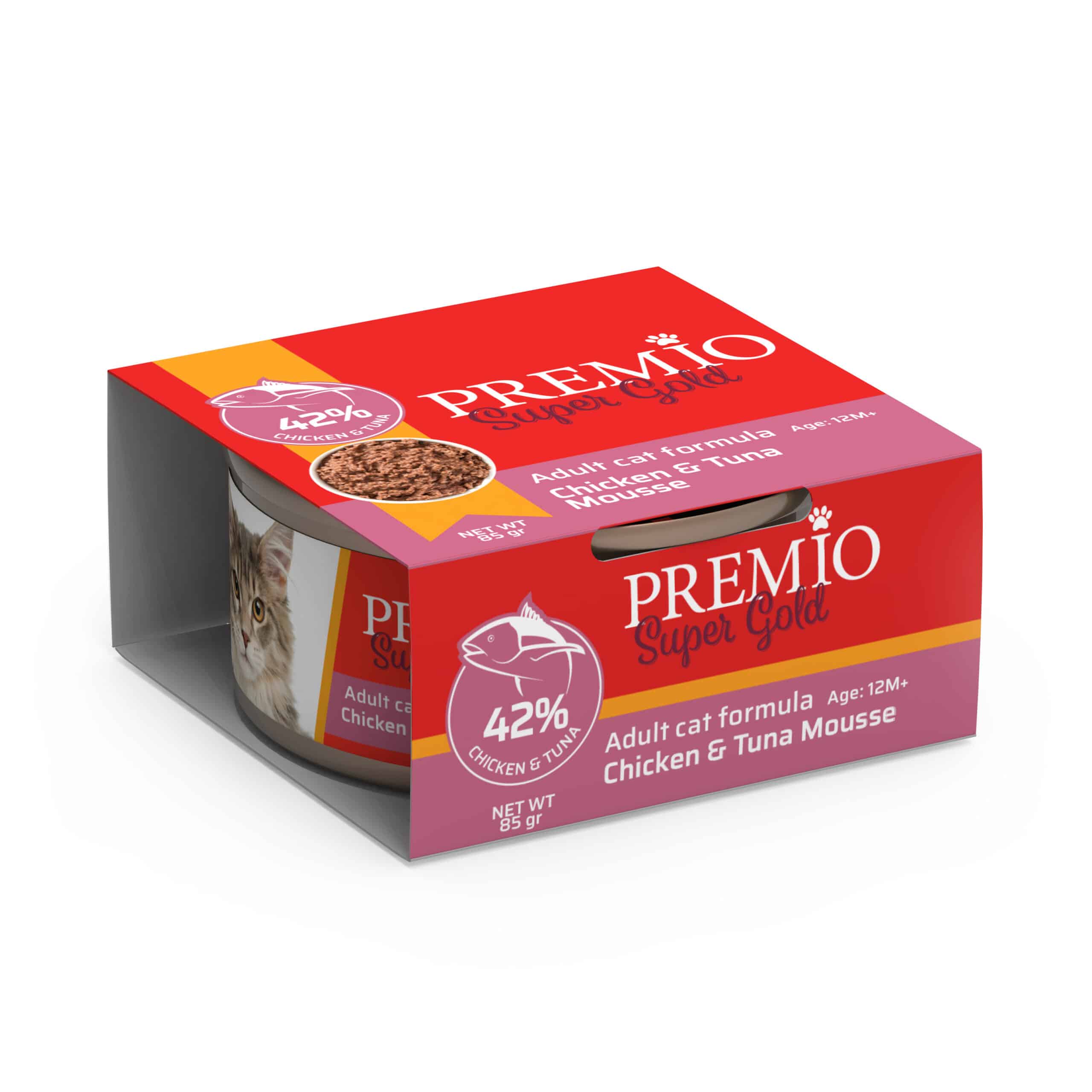 Premio (פרמיו), סופר גולד, מעדן פטה לחתולים בטעם עוף וטונה, 85 גרם