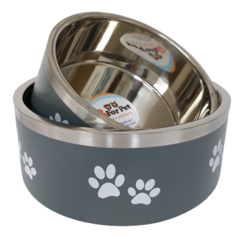 קערת נירוסטה, לכלב ולחתול, דופן כפול, דוגמת כפות רגליים, קוטר 17 ס"מ