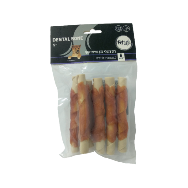 עצם רול דנטלית בציפוי עוף לכלב – מארז 6 יחידות – 210 גרם