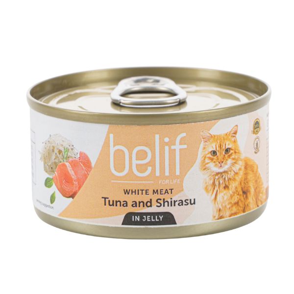 belif, מזון רטוב, מעדן בטעם טונה ושירסו בג'לי, לחתול בוגר, 80 גרם