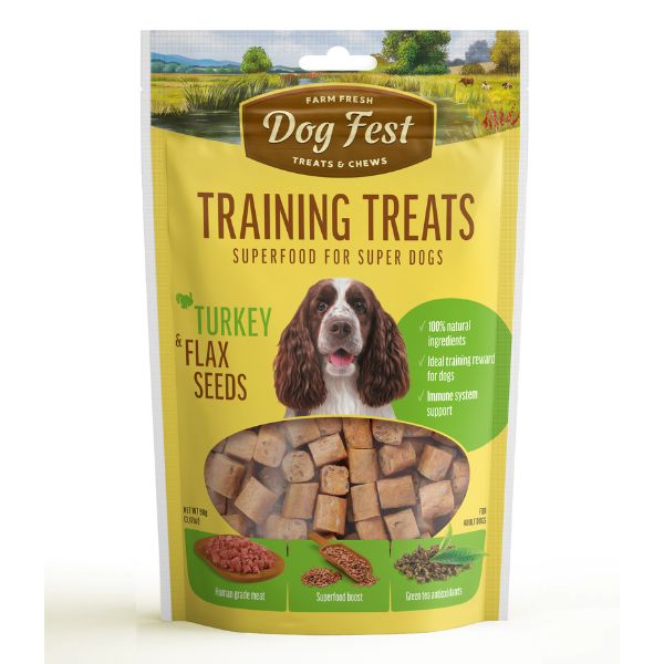 דוג פסט (Dog Fest), חטיפי אילוף קוביות בטעם הודו וזרעי פשתן, 90 גרם
