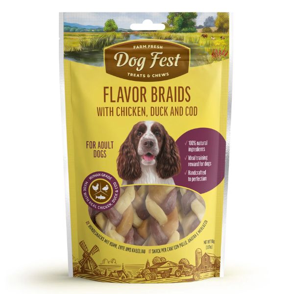 דוג פסט (Dog Fest), חטיפי בשר עוף, ברווז ודג בקלה, 90 גרם
