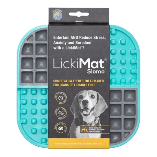 משטח האכלה וליקוק איטי, לכלב קטן ולחתול, דגם Slomo, צבע טורקיז
